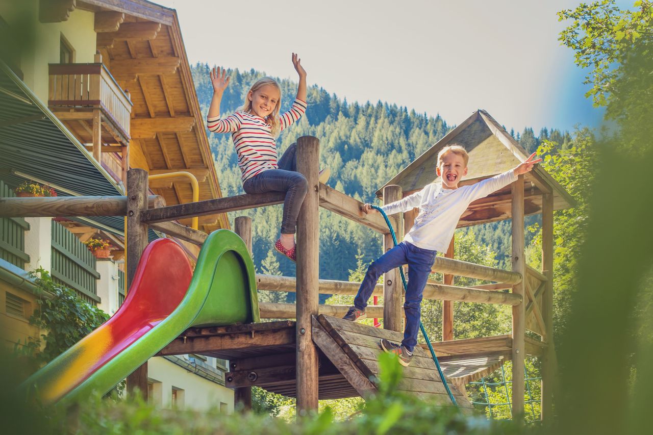 Lassen Sie sich in Ihrem Hotel in Dienten am Hochkönig rundum verwöhnen. Ob im Stüberl, an der Hausbar, beim Kachelofen oder in der Sauna: Gemütlichkeit wird bei uns groß geschrieben. Der Salzburger Hof in Dienten bietet Urlaub der Extraklasse! Erholen Sie sich in Ihrem Familienurlaub in Salzburg ... Im Hotel Salzburger Hof in Dienten, erwartet unsere kleinen Gäste in ihrem Sommerurlaub mit unserer Kinderbetreuung aufregende Entdeckungsreisen und viele lustige Abenteuer auf unserem großen Kinder-Abenteuerspielplatz, der sich inmitten einer großen Liegewiese und abseits jeder Straße befindet. Eine Sandgrube, tolle Schaukeln, ein Kinderspielhaus, ein Riesentrampolin und natürlich viele Spielsachen laden die Kinder zum Spielen, Entdecken und Spaß haben ein. In der Ferienzeit bietet unsere Kinderbetreuung ein tolles Kinderprogramm zum Mitmachen. Da ist für Klein und Groß etwas dabei und Langeweile gibt's nicht! Eine professionelle Kinderbetreuung findet an 5 Halbtagen pro Woche im Sommer statt.