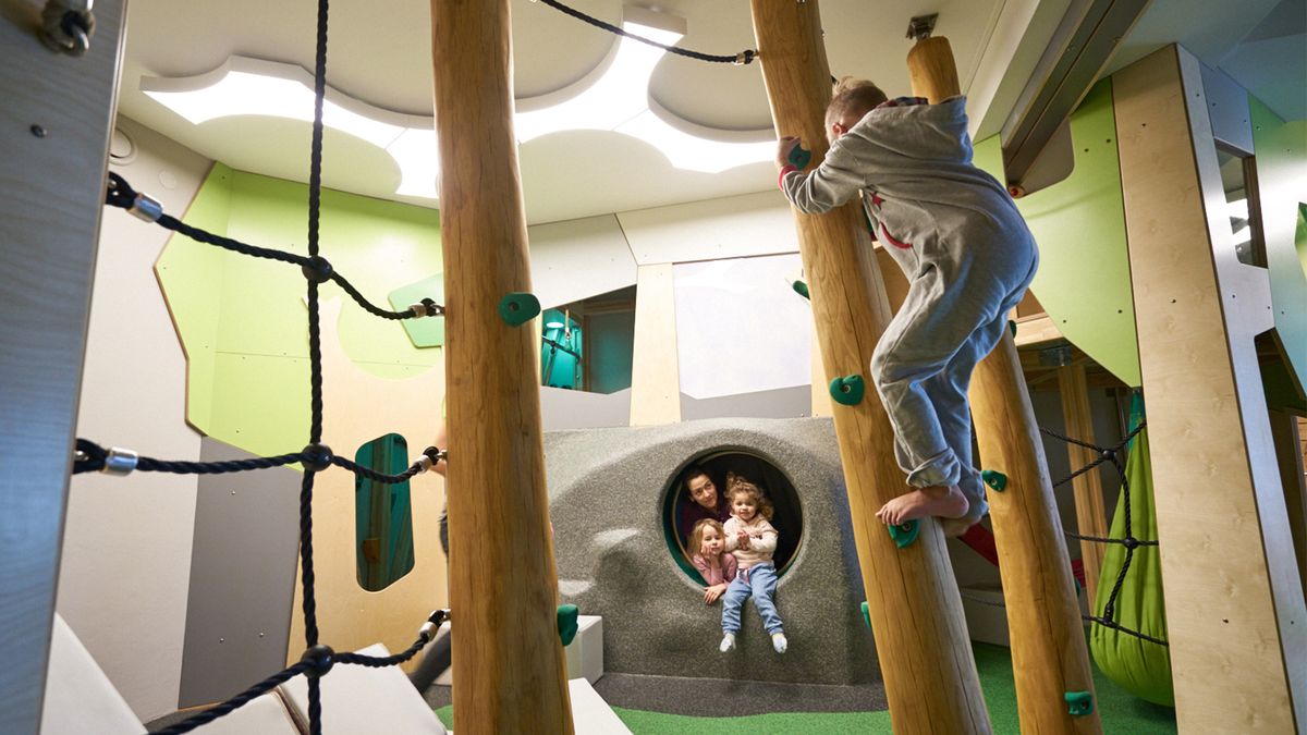 Falls die Sonne einmal nicht vom Himmel lacht, gibt es auch drinnen viele Spielmöglichkeiten z.B.: im Kinderkletterraum oder im 200m2 großen Spielzimmer mit Fun Box, Kinderkino und Babylounge.