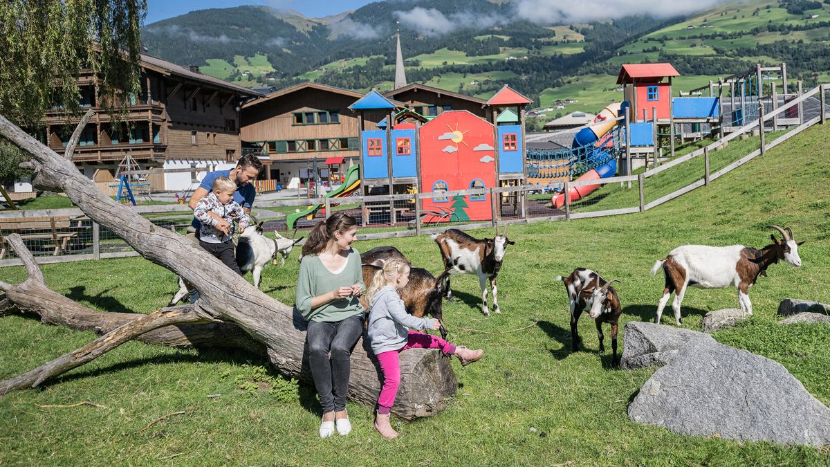 Das Naturresort Puradies Leogang ist ein Traum für Kinder, und für Eltern! Eltern schätzen die Alleinlage ohne Straßen, ohne Autos, mit viel Sicherheit für die Kinder und 300.000 Quadratmetern Wiesen und Wäldern für Naturabenteuer. Kinder lieben es, Bauer Wasti bei den Hasen, Ziegen und Schafen im Bauernhof zu helfen, die Eier fürs Frühstück zu stibitzen, im Naturbadeteich zu tauchen oder im neuen Kinderpool zu spielen. Und dann ist auch noch alles so wunderherrlich entspannt und kinderfreundlich.Liebevolle und naturnahe Kinderbetreuung mit abwechslungsreichem Programm, ein Abenteuerspielplatz der sich gleich neben dem Ziegengehege befindet. Und ganz neu haben wir einen Familien-Schwimmbereich, separat vom ruhigen Adults Only Wellnessbereich. Familienurlaub im Puradies: Wo nichts zu wenig, nichts zu viel, einfach alles genau richtig ist.