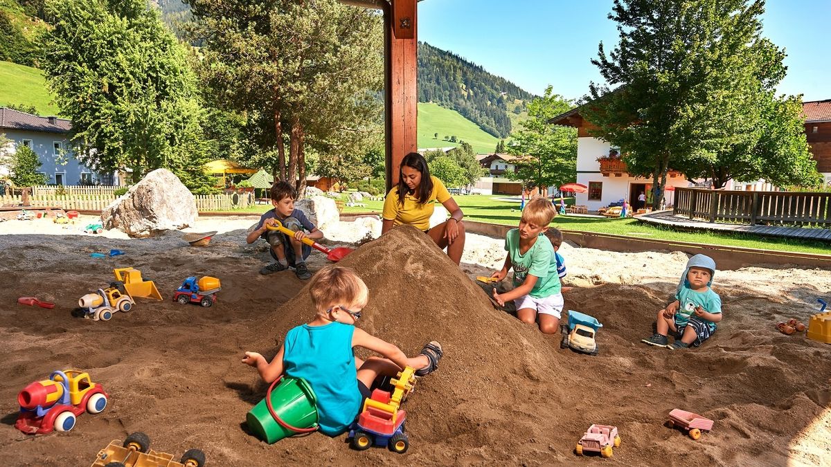 AlpenSchlössl Kids Club Das tolle Kinderprogramm im AlpenSchlössl Kids Club lässt keine Langeweile aufkommen. Wir bieten kostenlose, liebevolle Kinderbetreuung von unserem bestens geschulten Personal an. Beim Kinderprogramm haben die Kleinen gemeinsam viel Spaß und Freude. Los geht's!