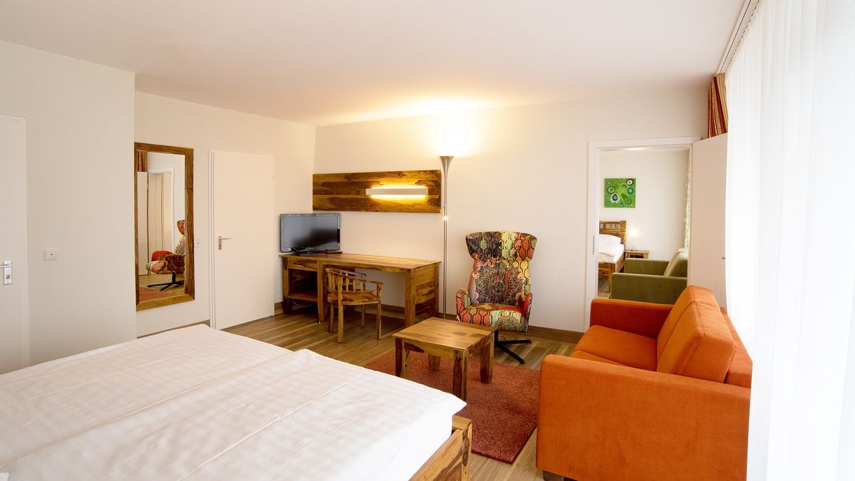 Für Familien stehen Familienzimmer (ca. 35 qm) für 2 Erw. und 1 Kind (bis 15 Jahre) bzw. 1 Erw. und 2 Kinder oder großzügige 2-Raum-Familienappartements (ca. 70 qm, 2 Familienzimmer mit Verbindungstüre) für 2 Erw. und 1 bis 4 Kinder (weitere Kinder auf Anfrage) zur Verfügung. Die Zimmer sind auf 3 Gebäude verteilt. Die moderiniserten Einheiten tragen den Zusatz "Komfort", die noch nicht renovierten Einheiten "Standard".