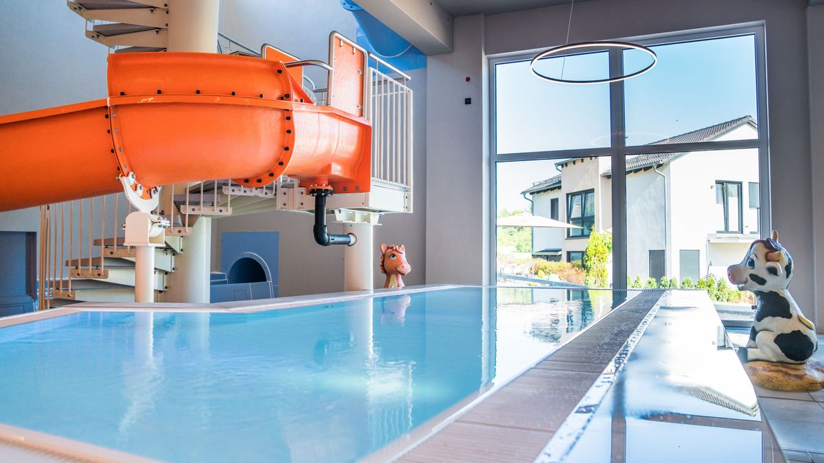 Bei uns werden Ihre Kids 13 Stunden täglich von über 25 BetreuerInnen in 5 altersgerechten Clubs auf über 2.000 qm nicht nur betreut, sondern liebevoll umsorgt! Nur bei uns gibt es die längste Hotel-Reifenwasserrutsche Deutschlands mit 128 Metern Länge und ein eigenes Babyerlebnisbad "Planschen auf dem Bauernhof", also Mega-Wassergaudi für jedes Alter ist garantiert. Selbstverständlich haben auch zwei traumhafte Innenpools und der Infinity-Außenpool sowie die großzügige Saunalandschaft einen sensationellen Panoramablick!