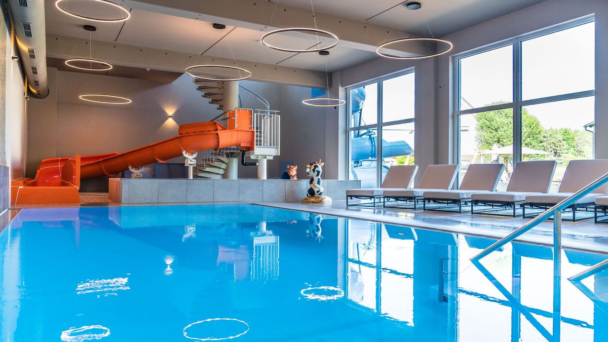 • Über 5.500 m² großer Wellnessbereich mit 9 Sport- & Spaßpools und 81 m Röhrenwasserrutsche
