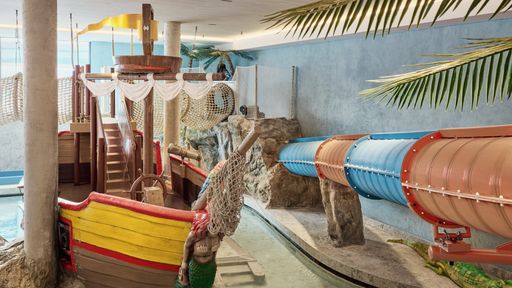 Spaß auf allen Ebenen. Mehr als 2.000 m² nur für Kinder und Jugendliche! Das bedeutet Spielmöglichkeiten ohne Ende in je nach Altersgruppe eingerichteten Betreuungsräumen. Zudem sorgen Kino & Theater, Turnhalle, Softplayanlage, Indoor-Gokarts und die Riesenrutsche über fünf Etagen für ein Feuerwerk an Emotionen. Entdecke die Karibik in den Alpen: Im Piratenland mit echtem Sandstrand und in der Wasser-Wunder-Welt mit Reifen-Wasserrutsche, Indoor-, Outdoor- und Sole-Pool vergessen selbst Mini-Meuterer das Meutern. Mindestens 25 ausgebildete KindergartenpädagogInnen kümmern sich verständnisvoll jeden Tag der Woche von morgens bis abends um die kleinen Gäste. Das betrifft auch Babys, die in der Alpenrose schon ab dem 7. Lebenstag liebevoll umsorgt werden!